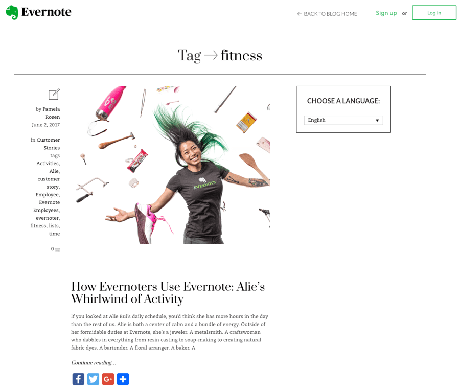 它列出了Evernote博客上所有带有“健身”标签的文章——这里只有一篇。