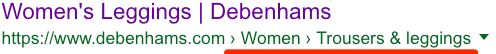 面包屑导航让访问者(和搜索引擎)有一个清晰的轨迹来浏览你的网站。它们看起来如下: