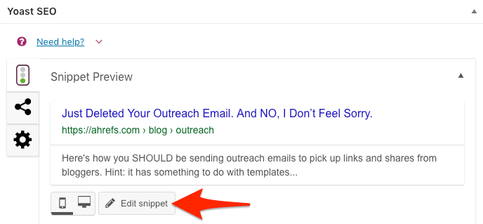 Yoast可以逐页设置两个选项。在编辑页面或文章时,点击Yoast设置中的齿轮图片,会看到下图所示的界面: