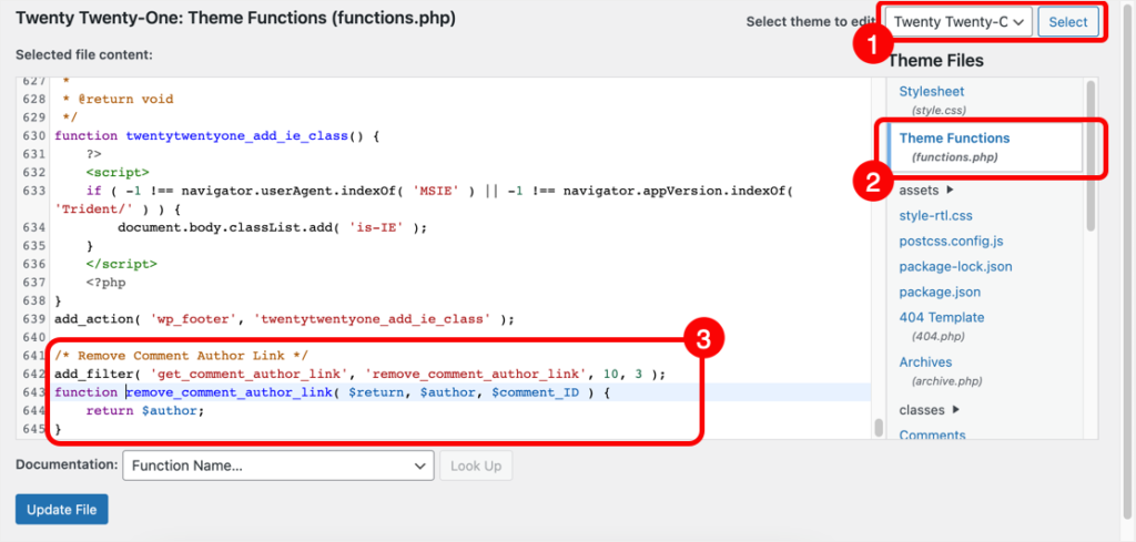 上面的选项很容易做到,尽管它可能不适用于所有的WordPress主题。由于主题可以使用自定义CSS来修改默认的WordPress评论表单,所以在使用上述方法之前,必须检查主题的CSS。另外,你所有的旧评论还是会有链接作者名字的网址。因此,从注释中删除作者链接的下一个选项是使用主题的functions.php文件中的函数。