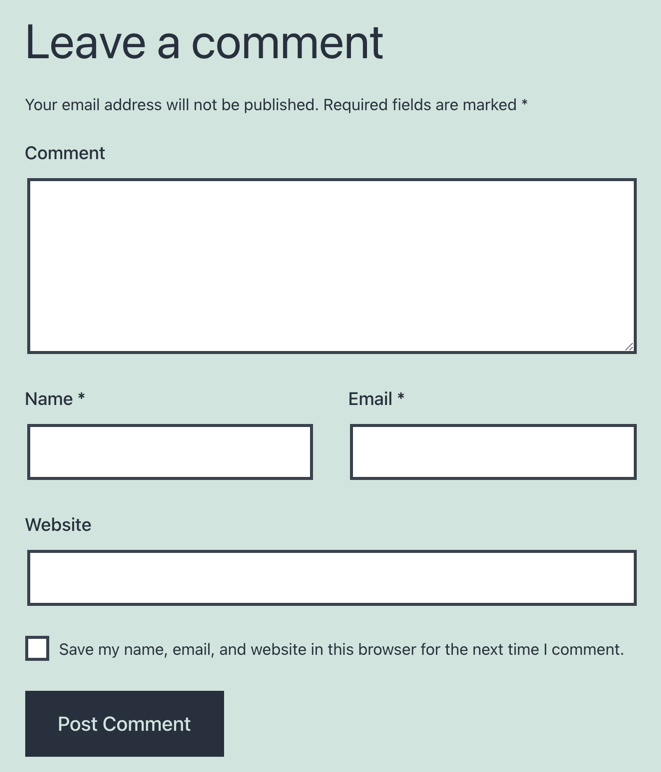 默认情况下,WordPress评论表单有以下字段: