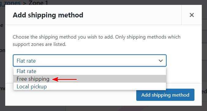 Step 3: 从菜单中选择免费送货选项
