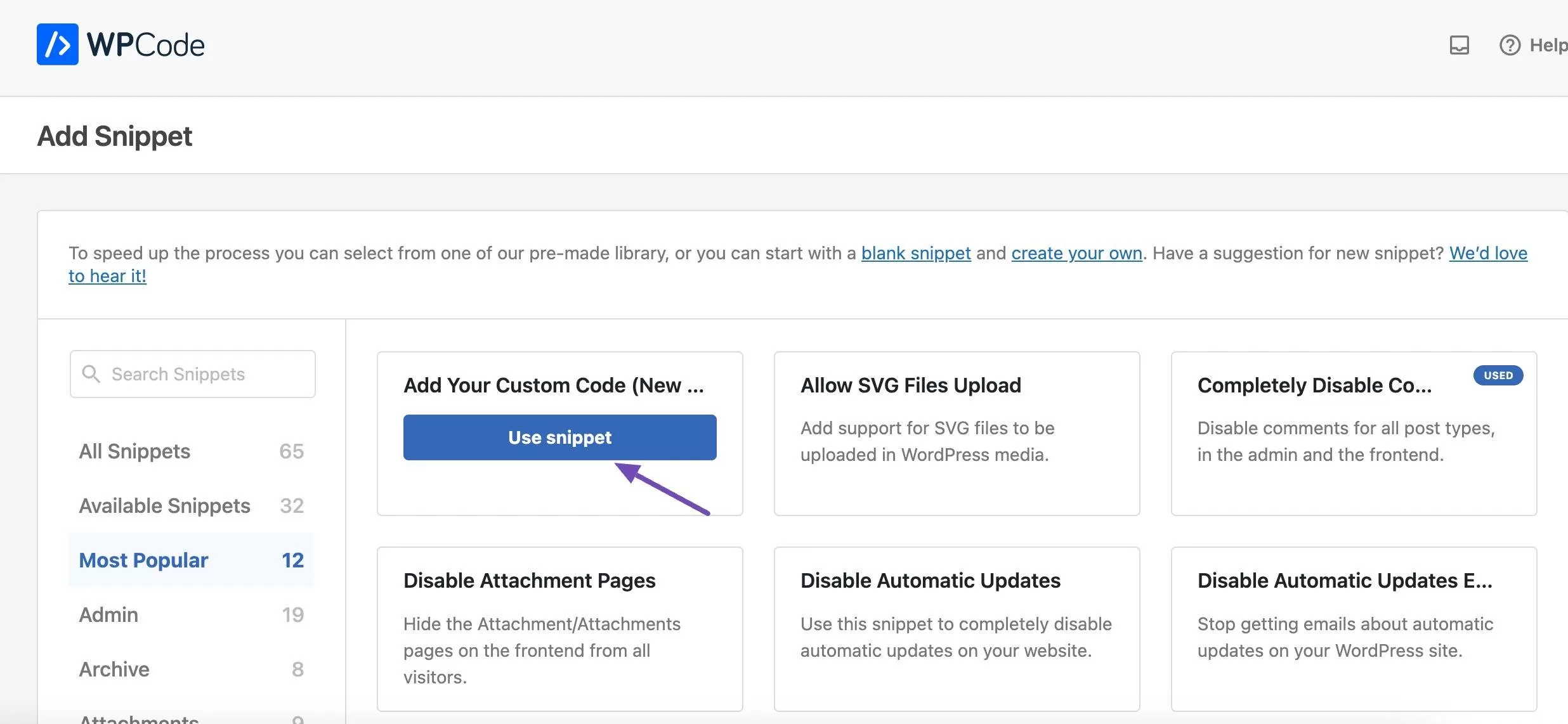 安装并激活插件后,在WordPress仪表板上悬停在“Code Snippets”菜单上,然后点击“Add Snippet”选项。