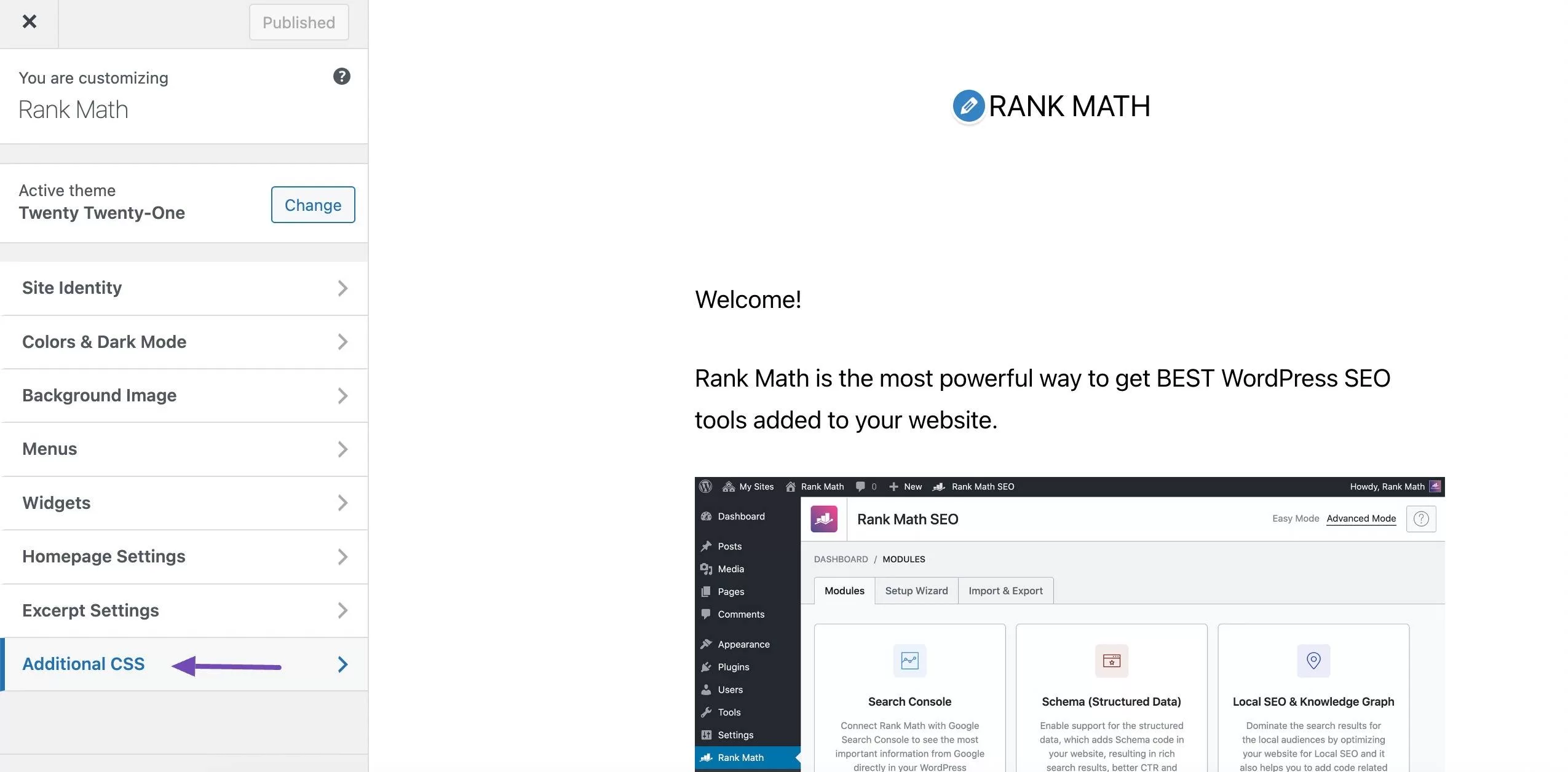 完成后,在定制器的额外CSS部分中添加代码片段。