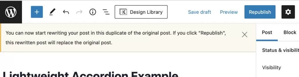 Rewrite & Republish:将文章克隆为新草稿,用作现有页面的新版本。这可以让你在不影响现有页面的情况下保留页面新版本的草稿。